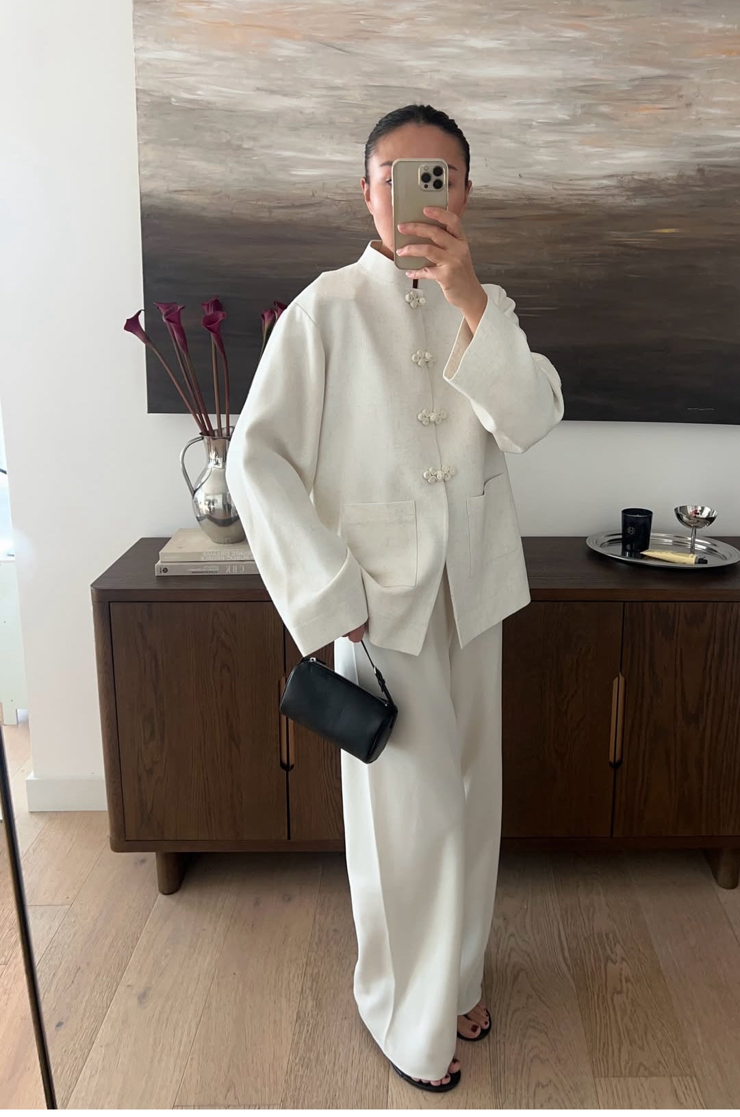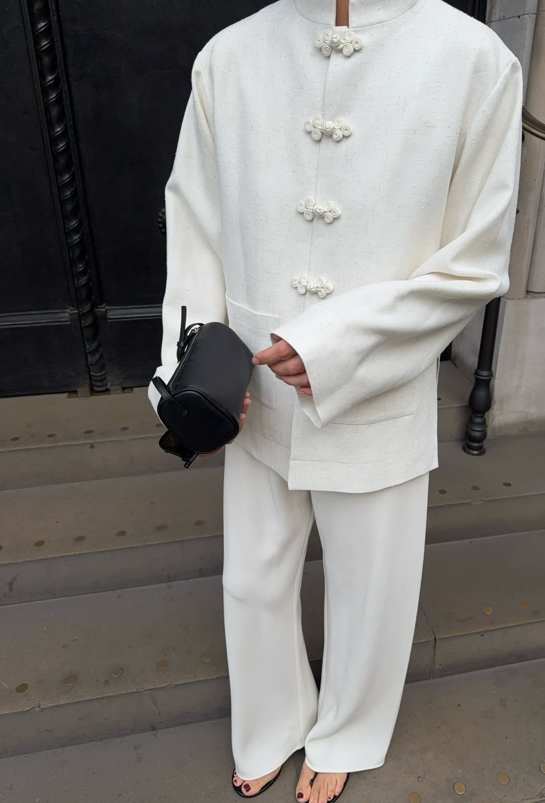 Un look minimal chic con ispirazione orientale, perfetto per occasioni eleganti ma anche per un outfit sofisticato da giorno. ✨